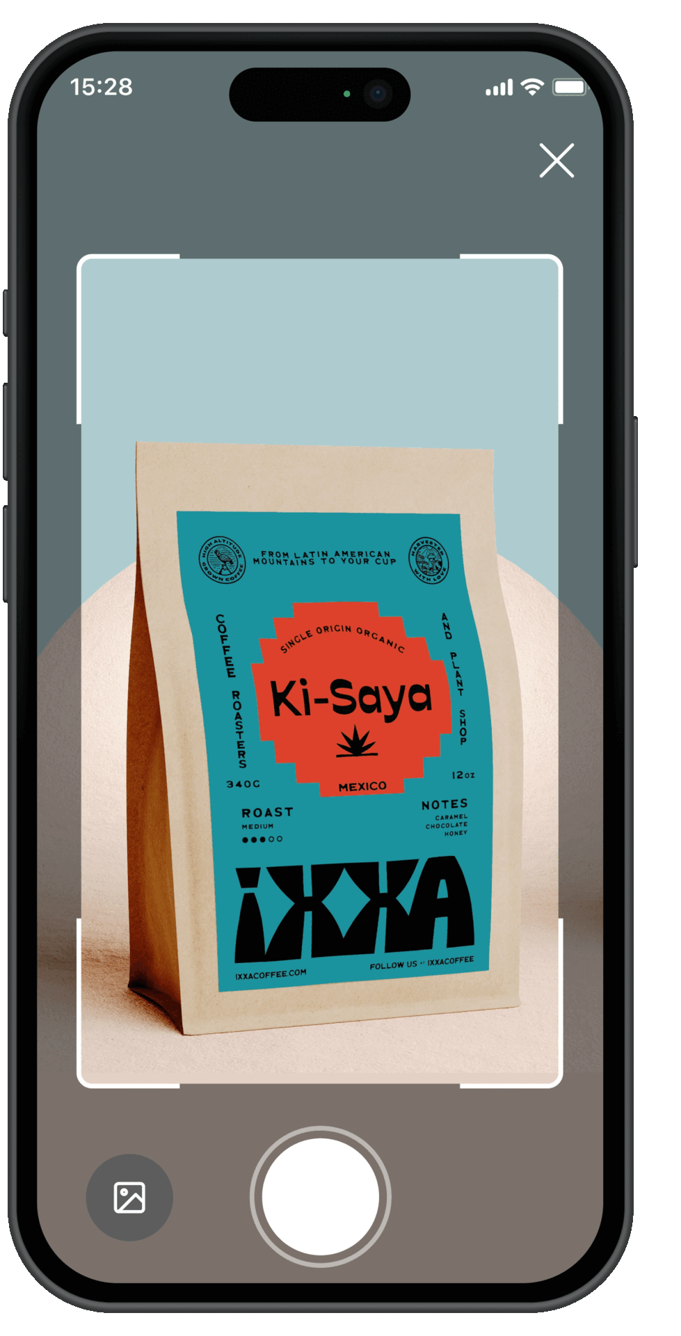 Take a photo of any coffee bag to discover details about every bag, like flavors, farmer and roaster details and brew tips.